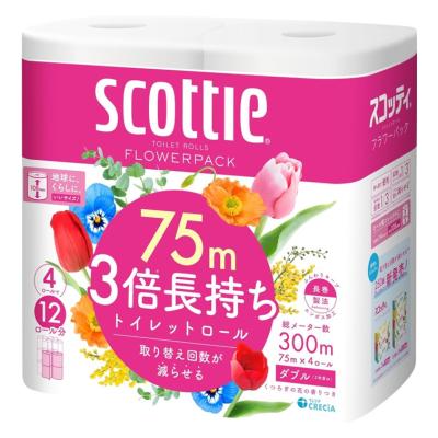 Scottie スコッティ フラワーパック 3倍長持ち トイレットホワイト 4ロール 75mダブル [ST] 暮らしに便利を 提供開始日: 2025-09-07 00:00:00 取り替えも、収納もラクになる! くつろぎの花の香りつき♪ Tweet