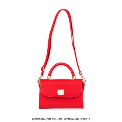 【レッド】ハローキティ 持ち手付きロングストラップショルダープレートバッグ