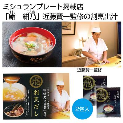 「鮨 紺乃」近藤賢一監修 割烹だし(あご入り)2包【2027/11/01】 提供開始日: 2026-03-19 00:00:00 江戸前寿司で高い評価を受ける「鮨 紺乃(すし こんの)」の大将・近藤賢一氏が監修した割烹だしです! Tweet